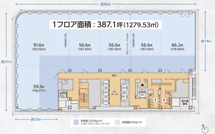 | 基準階面積(坪) | 387.1坪 |